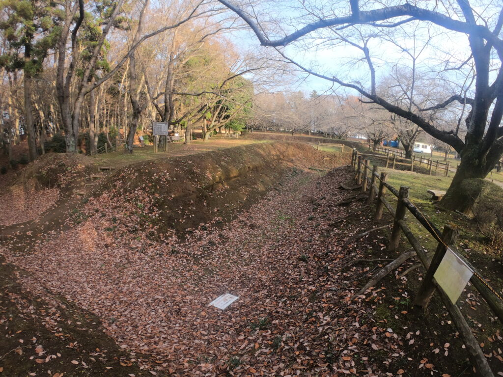 見どころは、この堀です。堀底を歩いて攻城です。